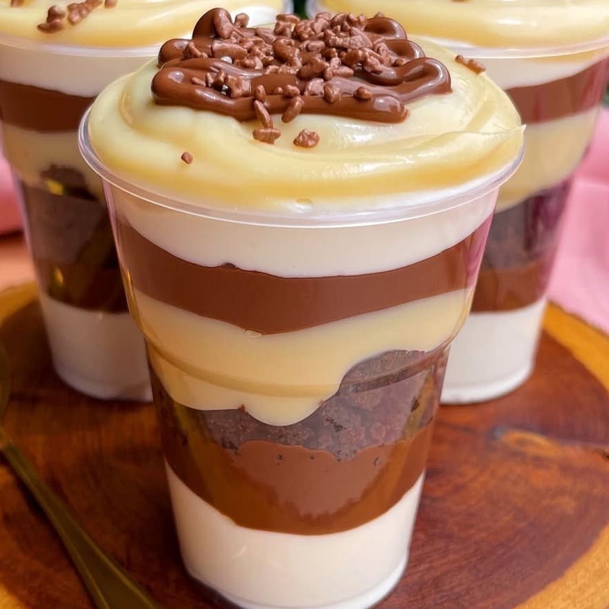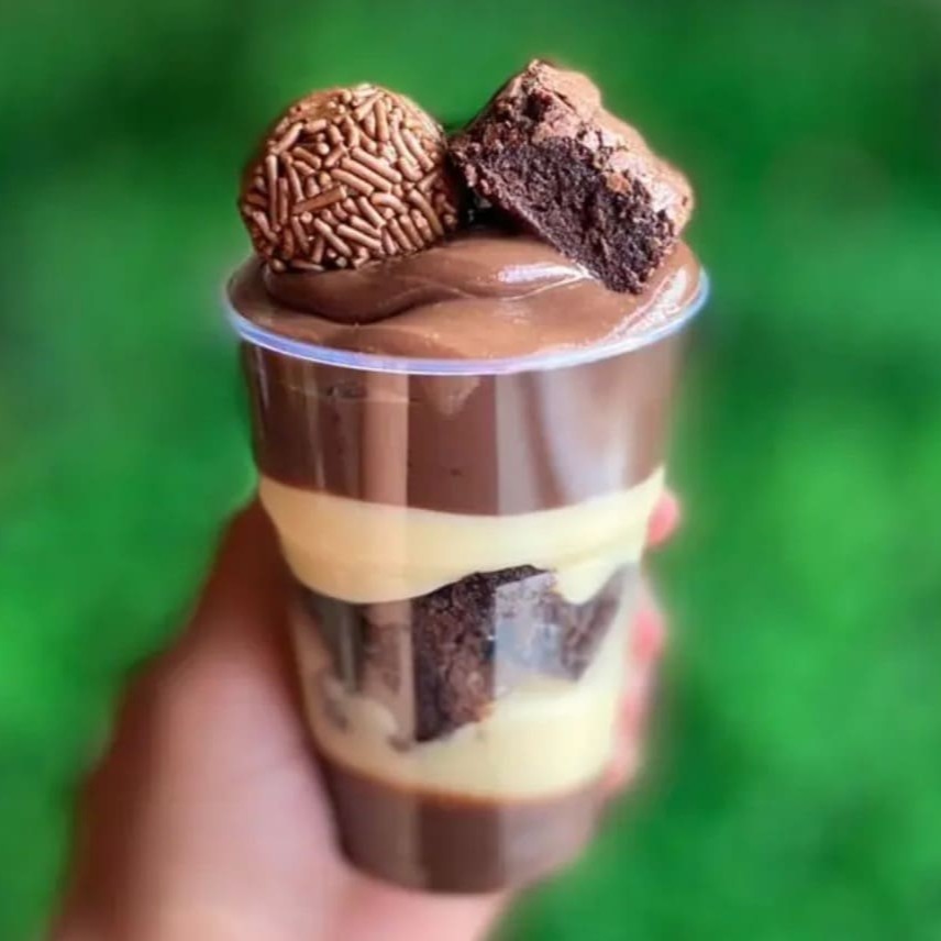 Copo no tamanho de 200 ml composto por camadas intercaladas de mousse de Ninho e creme de Ninho, chocolate premium, brownie e Nutella.