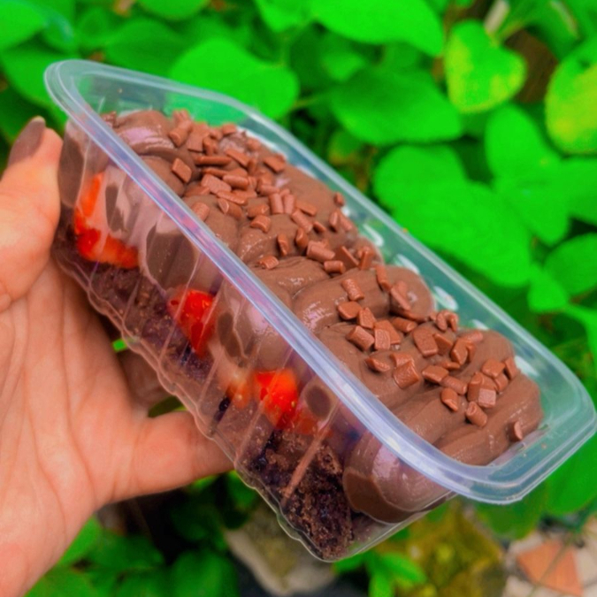 Chocolate cremoso, morangos frescos picados com pedaços de brownie. Embalagem 250ml