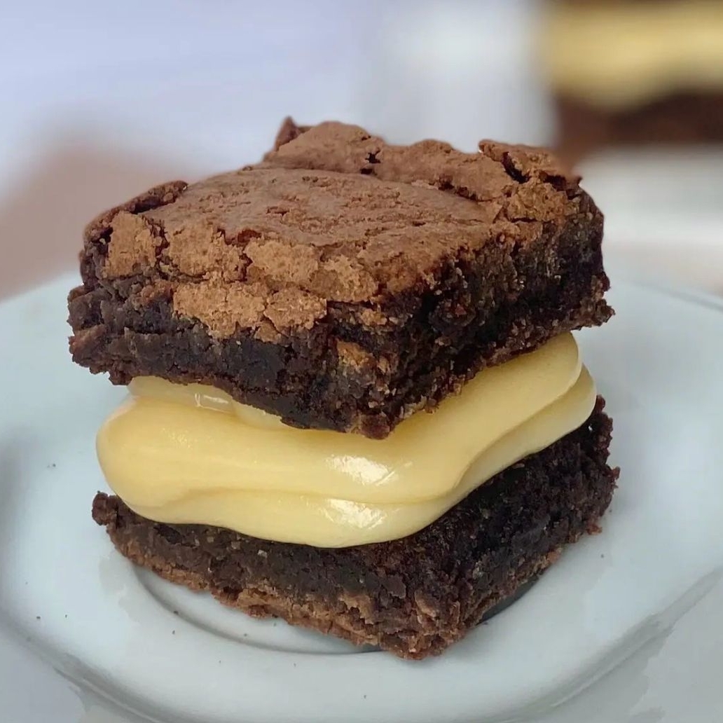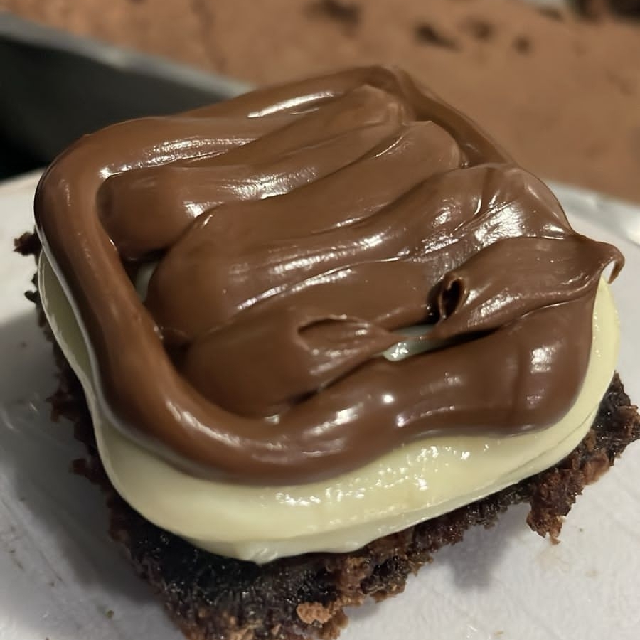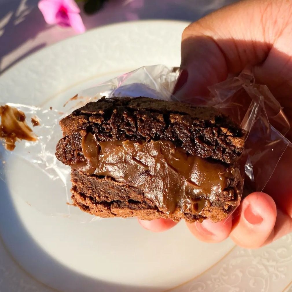 Nosso brownie super molhadinho, totalmente chocolatudo, recheado com muito brigadeiro de Ninho (5x5).
