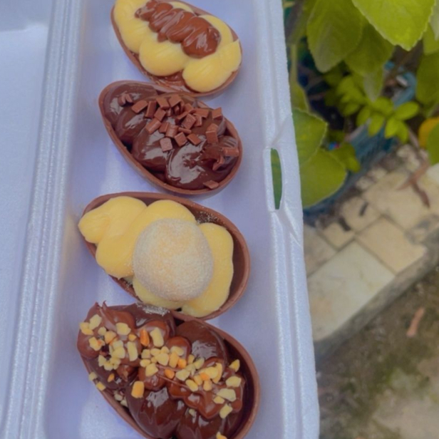 Neste kit você leva 04 unidades de mini ovos de páscoa de 50g cada nos sabores: Ninho com nutella, ninho com morango, ferrero e brigadeiro.