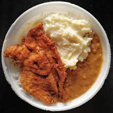 arroz, feijão, macarrão, figado acebolado com purê de batata