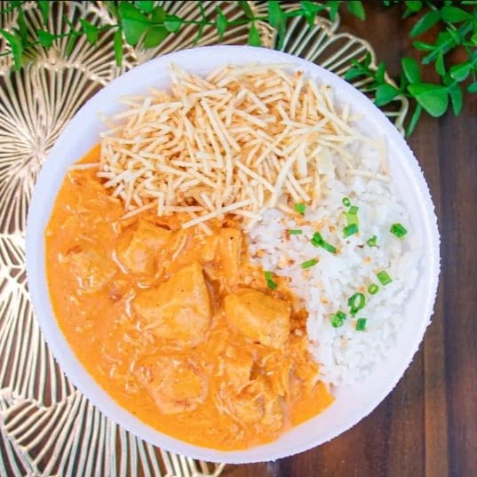 Delicioso strogonoff de frango ,Acompanha Arroz e Batata Aproximadamente 500g