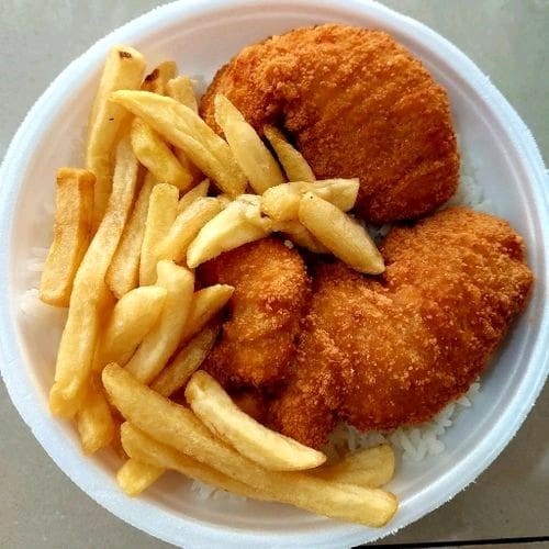 2 Marmitas De Milasena De Frango Crocante ( Vão 2 Marmitas ) Arroz+feijão+farofa+batata Frita
