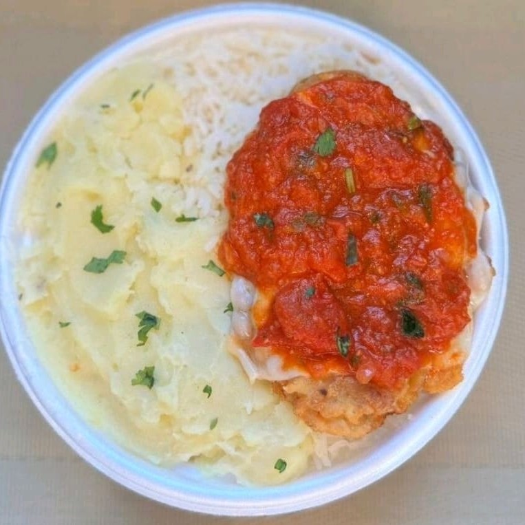 2 Marmitas De Filé De Frango Parmegiana ( Vão 2 Marmitas ) Arroz+feijão+farofa+fritas
