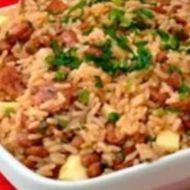 Acompanha um delicioso arroz feijão com caldo linguiça calabresa acebolada e farofa da casa