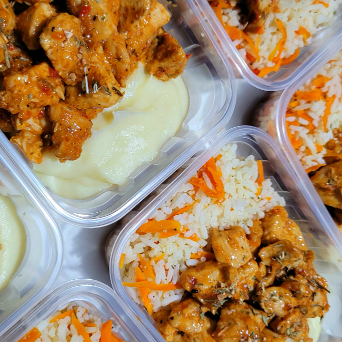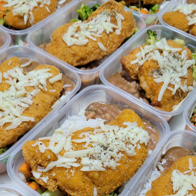 Arroz Branco, Feijão Carioca , Peito De Frango Empanado Assado,purê De Batata Inglesa .430g