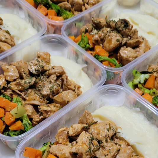 Purê De Batata Inglesa Com Frango Em Cubos , E Mix De Legumes. 350g