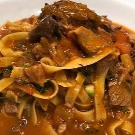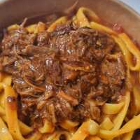 Delicioso talharim com massa macia e molho encorpado tomate vermelho suculento. Para essa delícia um ragu de Costela bovina.