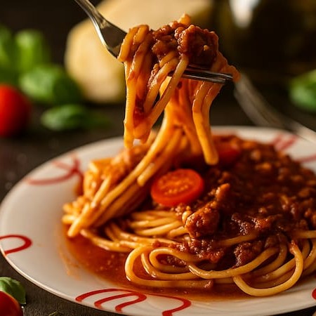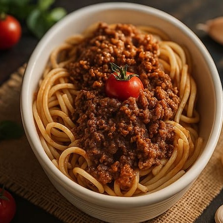Massa espaguete acompanhando do nosso molho artesanal carne à bolonhesa.