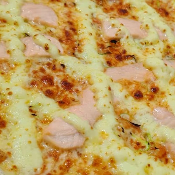 Molho de tomate, mussarela, calabresa e frango.