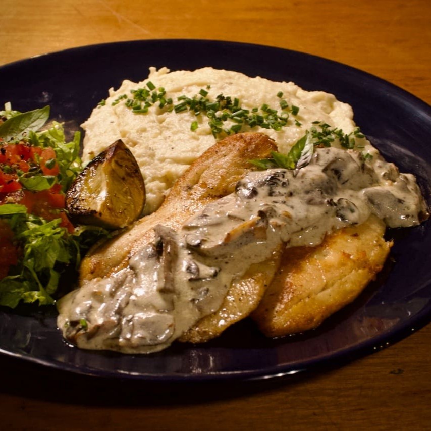 Filé De Tilápia Ao Molho De Cogumelos Paris.