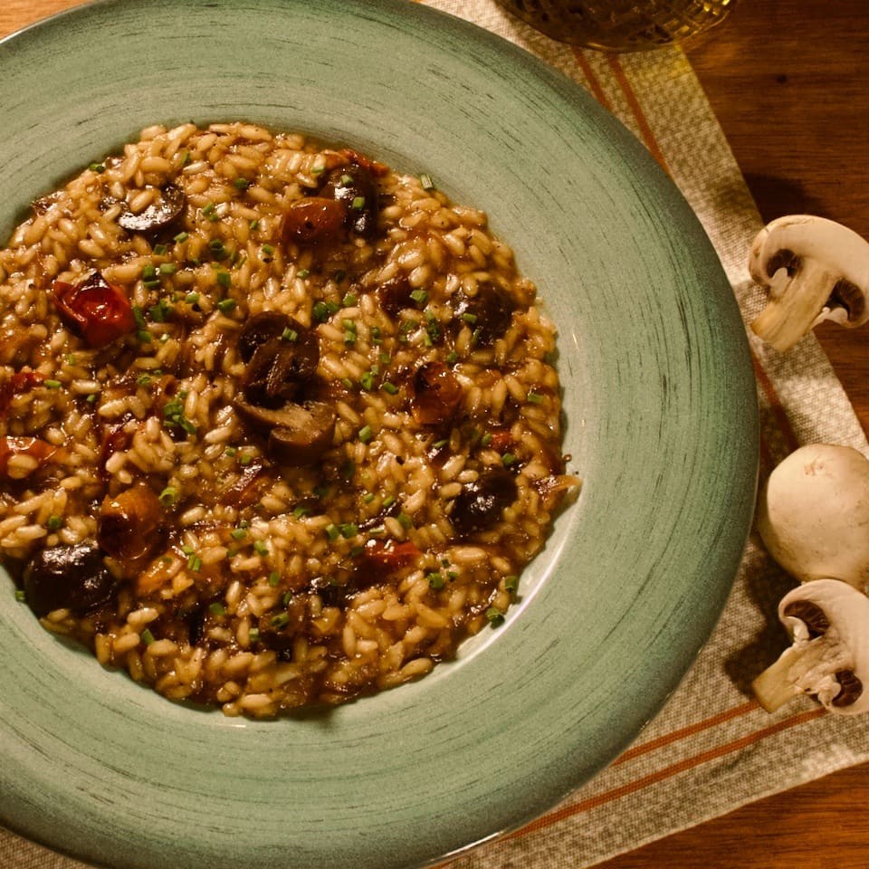 Risotto Com Cogumelos Defumados (vegano)