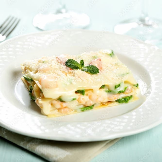 Deliciosa lasanha de camarão, alho-poró e queijo mussarela! Cada camada é cuidadosamente preparada para proporcionar uma explosão de texturas e aromas que vão conquistar o seu paladar. Perfeito para uma refeição individual, nossa lasanha é um convite à indulgência. Surpreenda-se com a harmonia de sabores e experimente um prato que é muito mais do que uma simples lasanha. É uma celebração da cozinha artesanal e do amor pelos ingredientes frescos e selecionados.