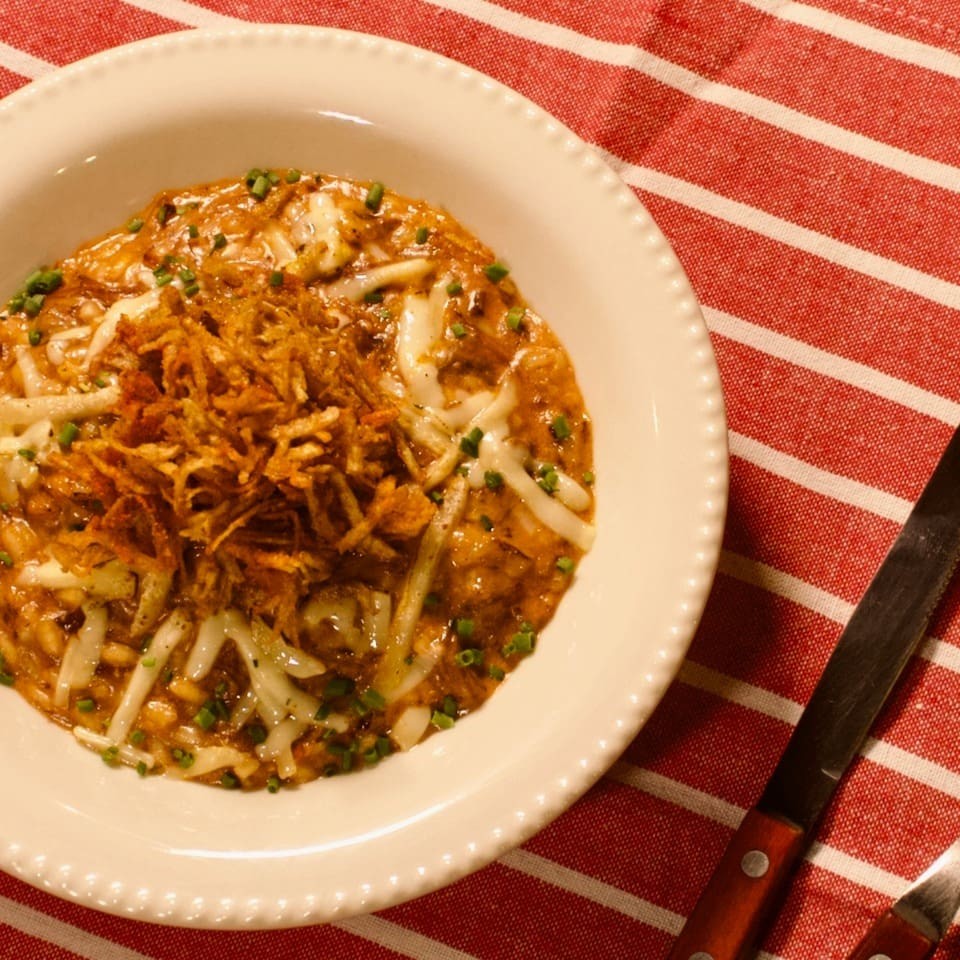 Risotto Com Ragu De Costela E Batata Palha Artesanal