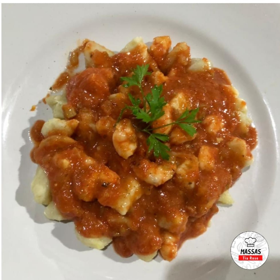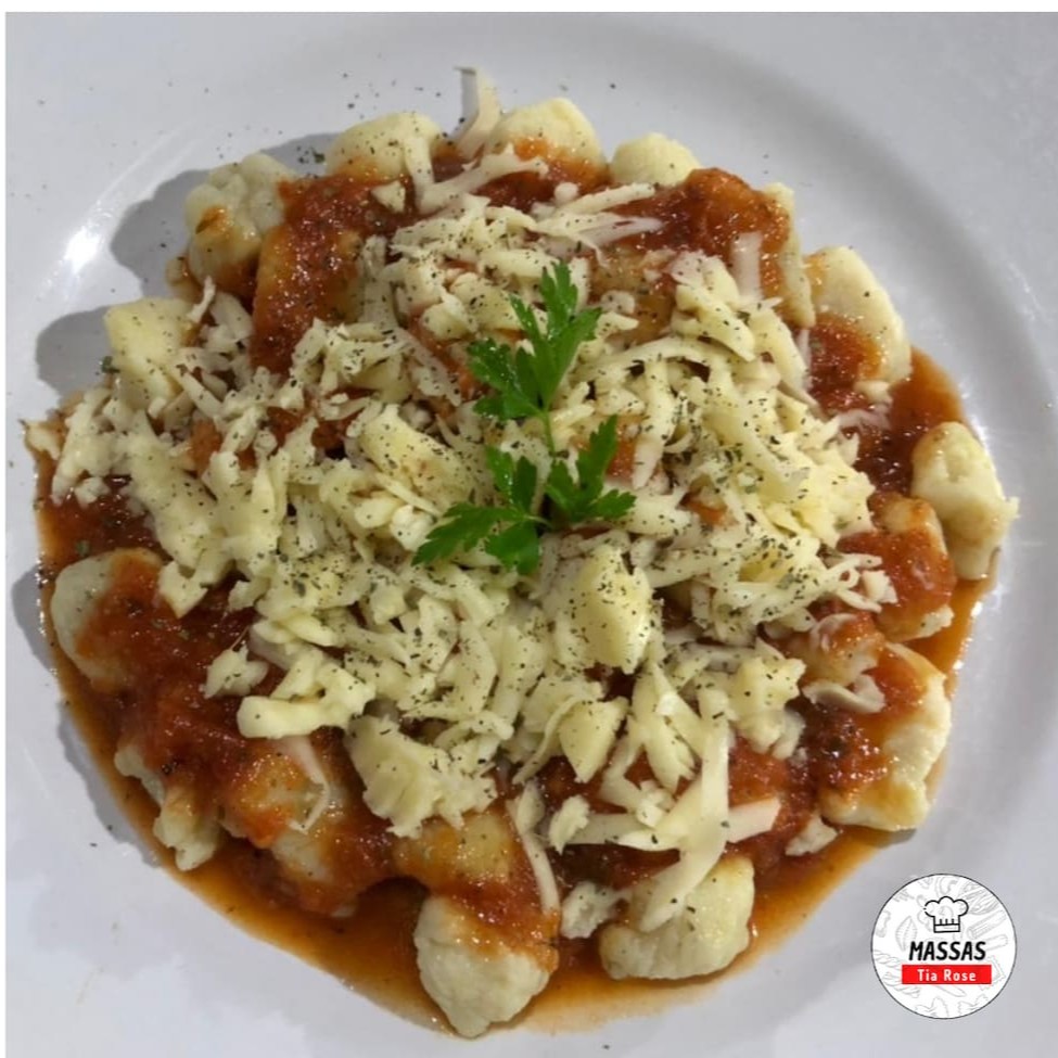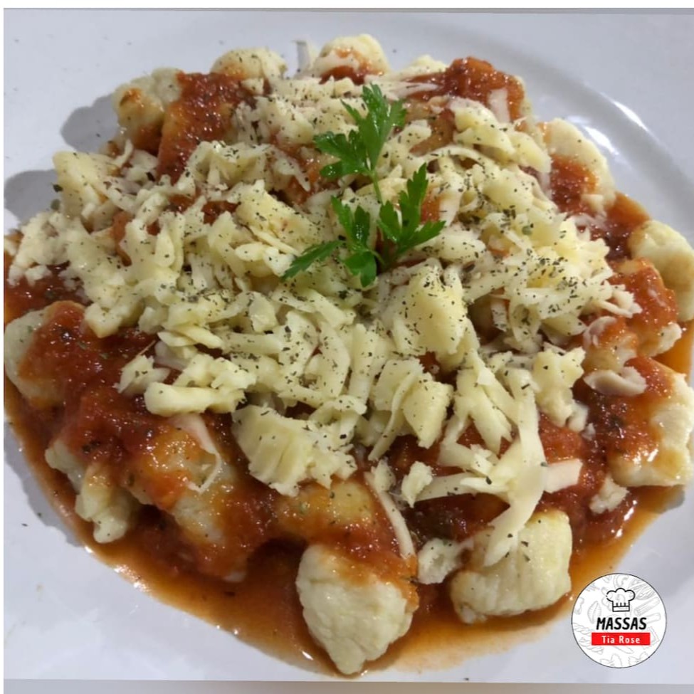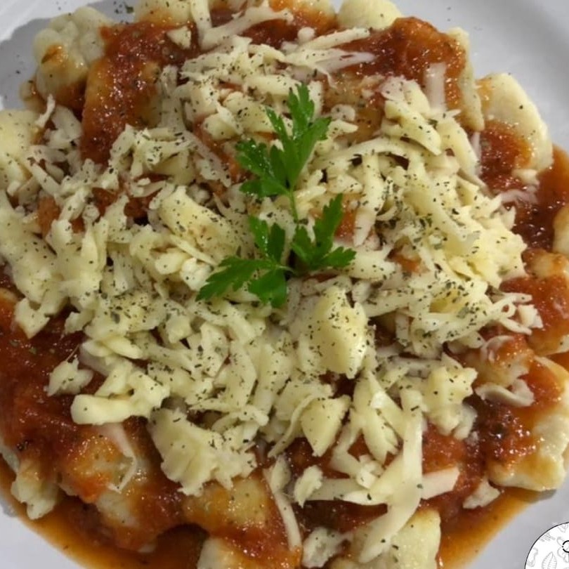 Uma deliciosa massa de batata, artesanal ao molho sugo e finalizado com mussarela ralada.