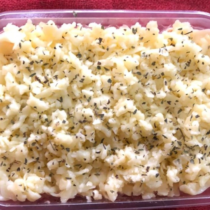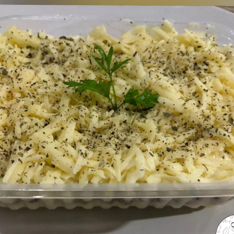 Um delicioso escondidinho de batata, recheado com molho de camarão e finalizado com mussarela ralada.