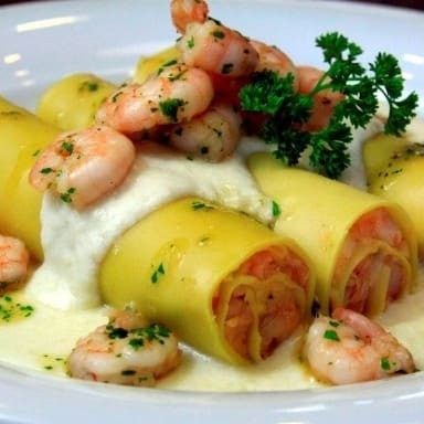 Canelone De Camarão Ao Molho, Finalizado Com Mussarela