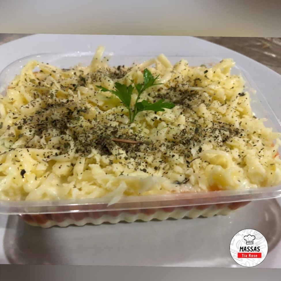 Uma deliciosa lasanha caseira ao molho de camarão com requeijão(Crioulo) e mussarela ralada.