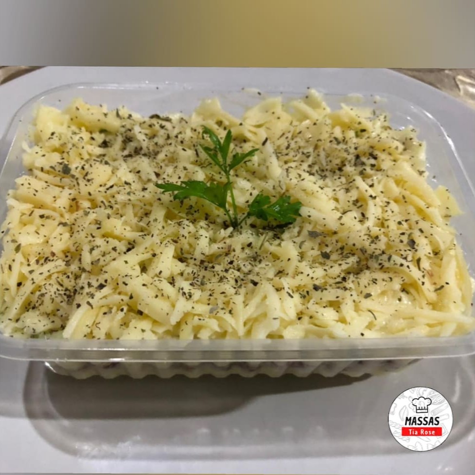 Uma deliciosa lasanha caseira de frango com requeijão(Crioulo) e mussarela ralada.