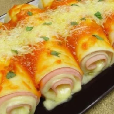 Canelone De Queijo Com Presunto Ao Molho, Finalizado Com Mussarela
