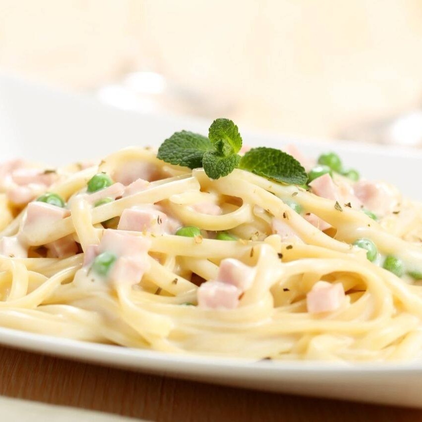 Espaguete Ao Molho Branco (bechamel) Com Presunto E Ervilhas
