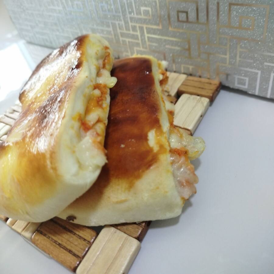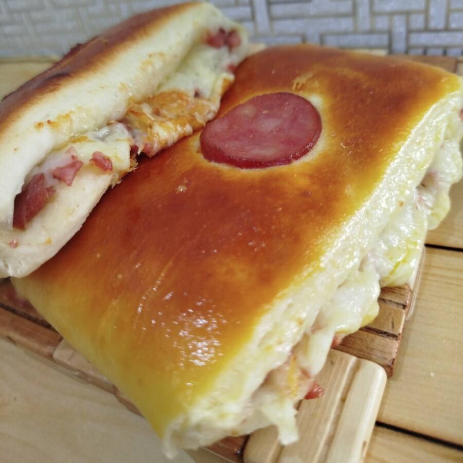 Pão de joelho artesanal recheado com calabresa temperada, queijo derretido e ervas. Crocante por fora e macio por dentro.