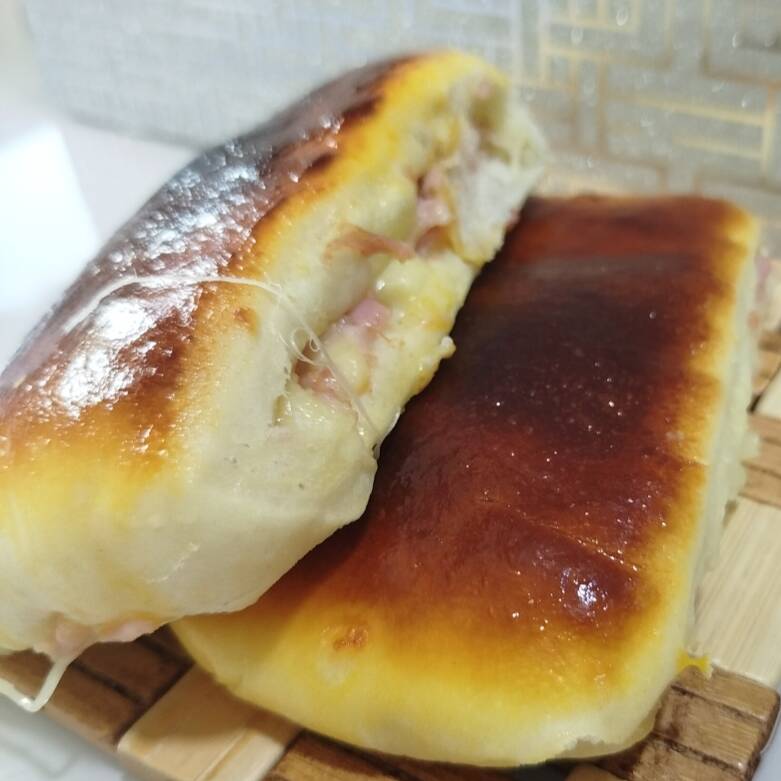 Pão de joelho artesanal recheado com queijo derretido e presunto de qualidade. Uma combinação clássica e irresistível.