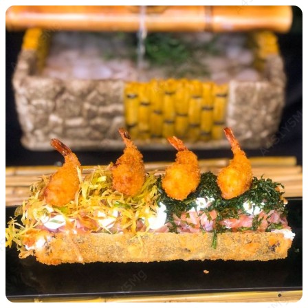 Arroz japonês, camarão cremoso, muito cream cheese, alho poró e camarões empanados. (Sem coca)