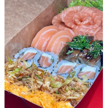 8 SASHIMI SALMÃO,4 SUSHI SALMÃO,4 JOW PORÓ,5 URAMAKI CROCANTE SALMÃO,5 HOT FILADELFIA.
