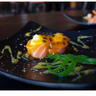 Lâmina de salmão, cheese e geleia de maracuja