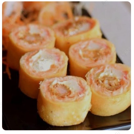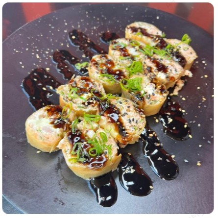 salmão,kani,camarão e cream cheese envolto na casquinha do harumaki.