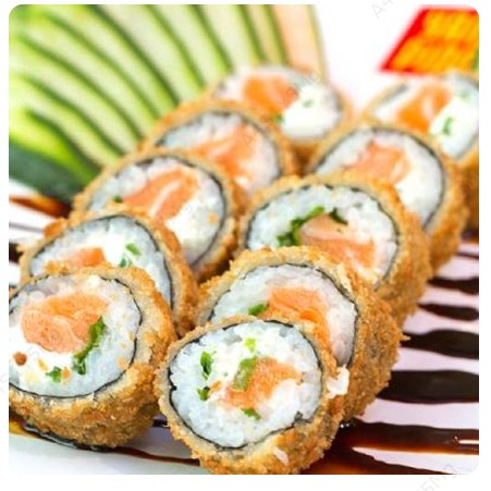 Alga, cheese , arroz, salmão empanado no panko frito