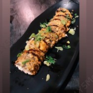 cream cheese envolto com lamina de salmão,cobertura de doritos