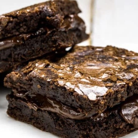 Delicioso brownie caseiro com uma massa super molhadinha e um cremosíssimo recheio de brigadeiro.