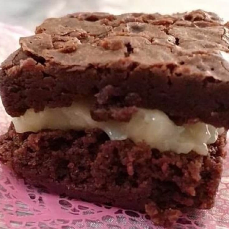 Delicioso brownie caseiro com uma massa super molhadinha e um cremosíssimo recheio de leite Ninho. Peso: aprox. 45g