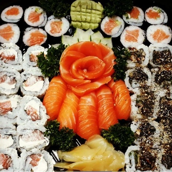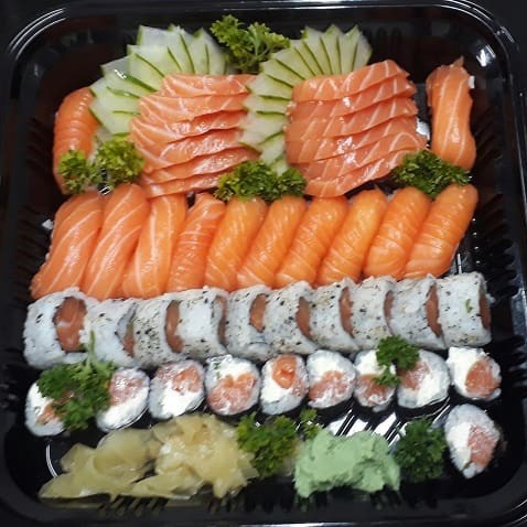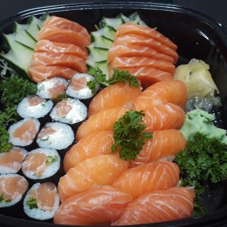 12 sashimis, 12 sushis, 12 uramakis, 12 makimonos filadélfia.