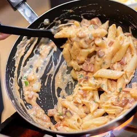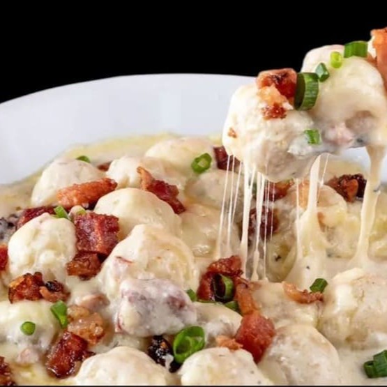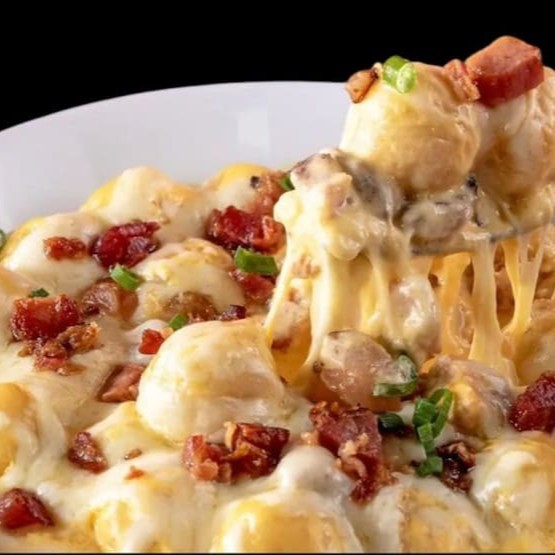 Nosso molho parisiense une cubos de presunto e bacon ao molho bechamel cremoso e ervihas, finalizando com queijo, bacon e cebolinha. (aprox. 600g)