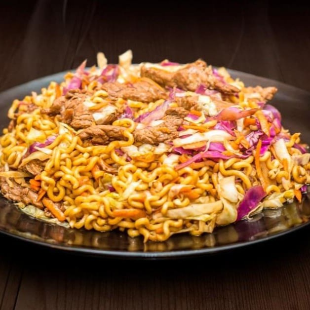 Delicioso yakisoba misto. (carne e frango). Ingredientes: Macarrão de yakisoba premium, repolho roxo, repolho verde, cenoura, carne e frango.