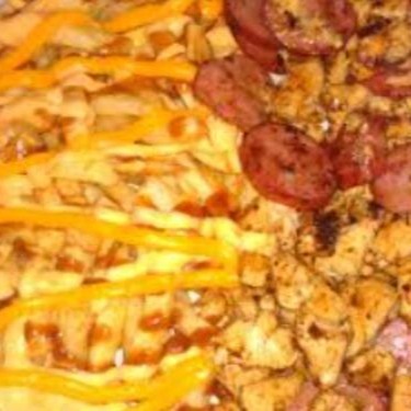 Batata frita, cheddar, Catupiry,calabresa e orégano