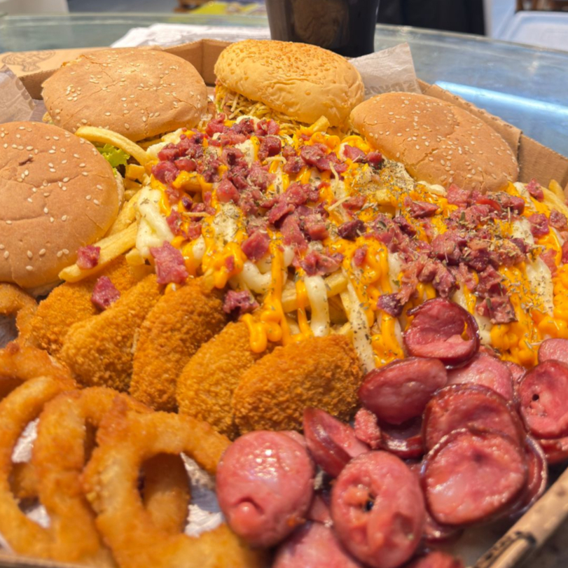4 x-burguer, batata turbinada, 10 nuggets e calabresa