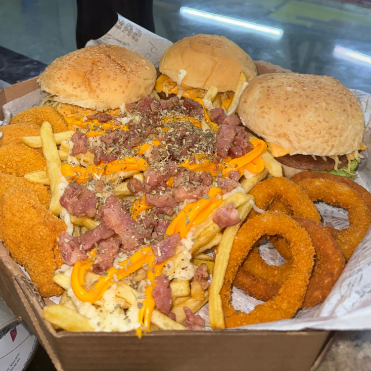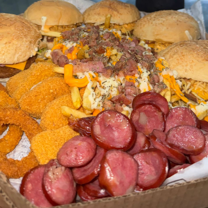5 x-burguer, batata turbinada, 10nuggts e calabresa
