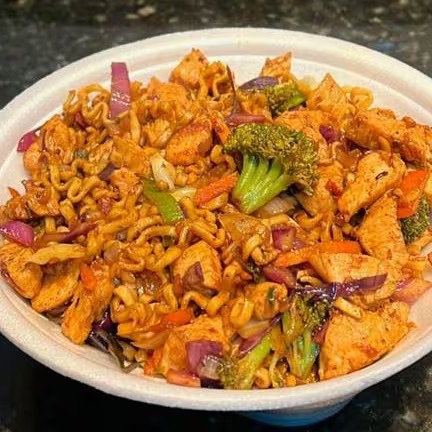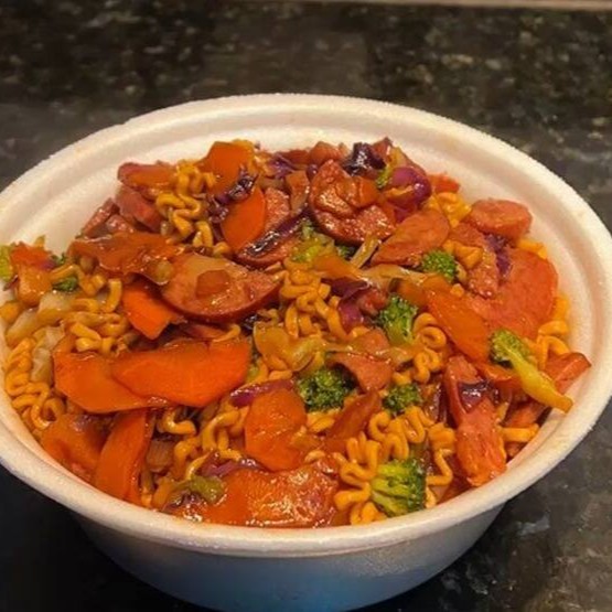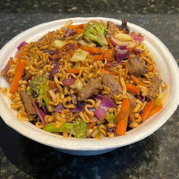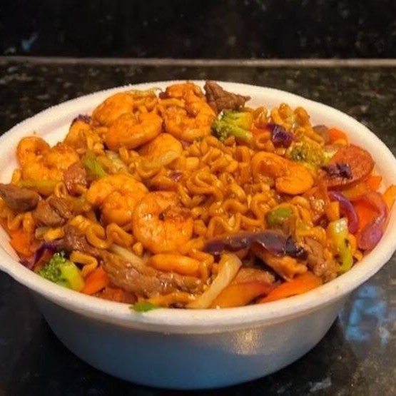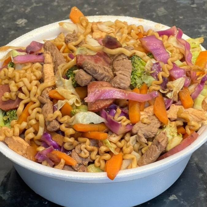 Brócolis, cenoura, cebola, repolho verde, repolho roxo, carne, frango, calabresa e camarão.