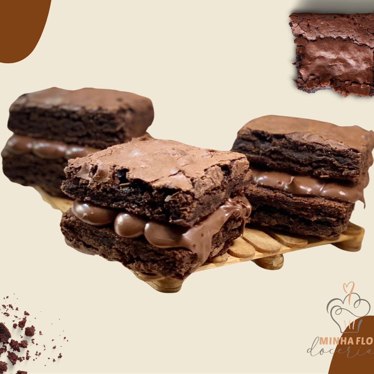 Brownie macio por dentro, com casquinha crocante e recheio generoso de doce de leite. A cremosidade do recheio encontra a textura molhadinha da nossa receita exclusiva, criando uma explosão de sabor a cada mordida. Irresistível do primeiro ao último pedaço.
