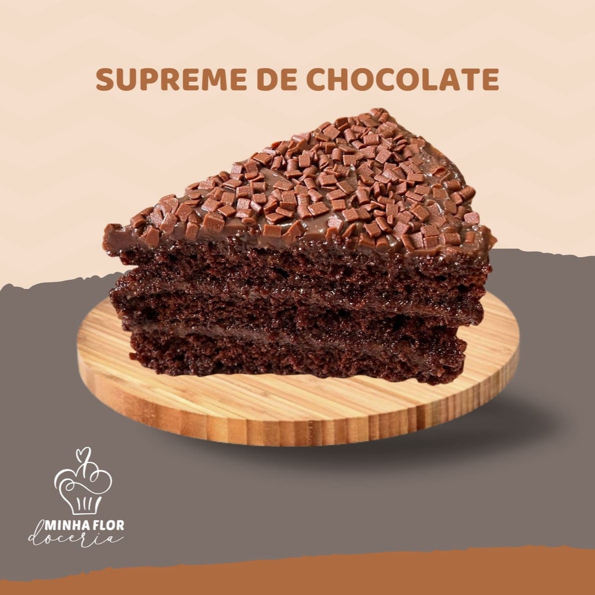 Bolo de chocolate macio e intenso, com nosso creme especial de chocolate cheio de pedacinhos que derretem na boca. É aquele tipo de doce que envolve, conforta e deixa lembrança boa. Feito com cuidado artesanal e carinho de verdade do jeitinho que é a essência da Minha Flor. Rico, marcante e impossível esquecer. 🧡