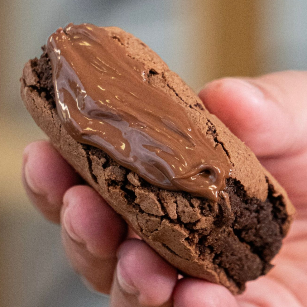 Nossa massa amanteigada estilo cookie americano vem recheada com Muita Nutella, daquele jeito que não tem como dar errado. Feita com carinho, pra quem leva sobremesa a sério e não resiste a um clássico reinventado. Perfeita pra dividir (ou não), serve até 12 pessoas mas se der um jeitinho, rende felicidade pra 20!