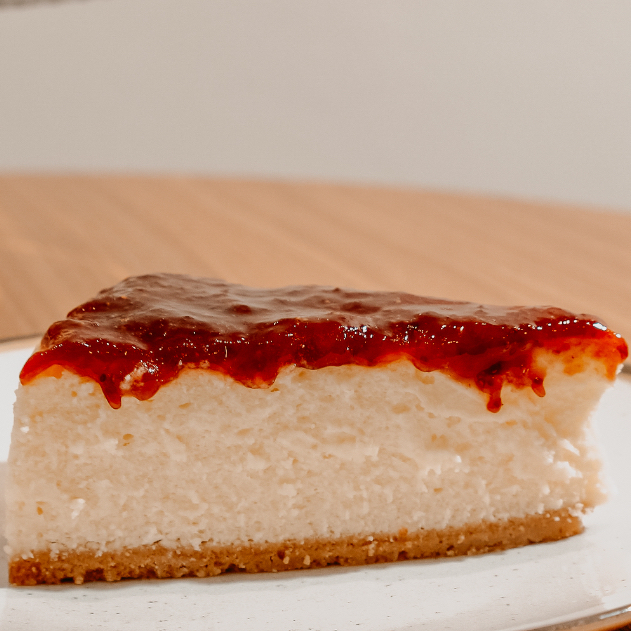 Cheesecake New York Um pedacinho de Manhattan no seu prato! Fatia cremosa no estilo clássico nova-iorquino, com textura delicada e sabor marcante que derrete na boca. Finalizada com nossa geleia artesanal de morango, feita aqui mesmo com frutas de verdade e uma boa dose de carinho. Uma sobremesa elegante, intensa e apaixonante perfeita pra quem ama sabores que impressionam sem fazer esforço.
