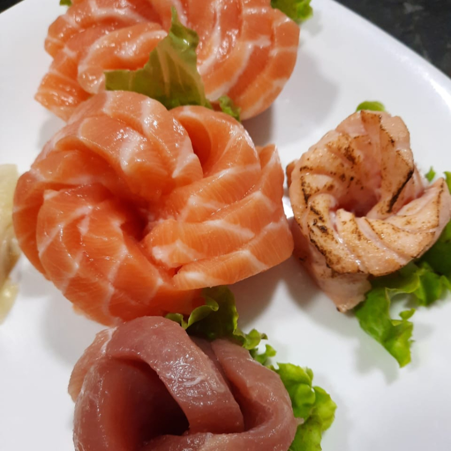 10 sashimi salmão, 1 sushi kani, 1 sushi skin, 6 salmão lemon, 12 hot filadelfia