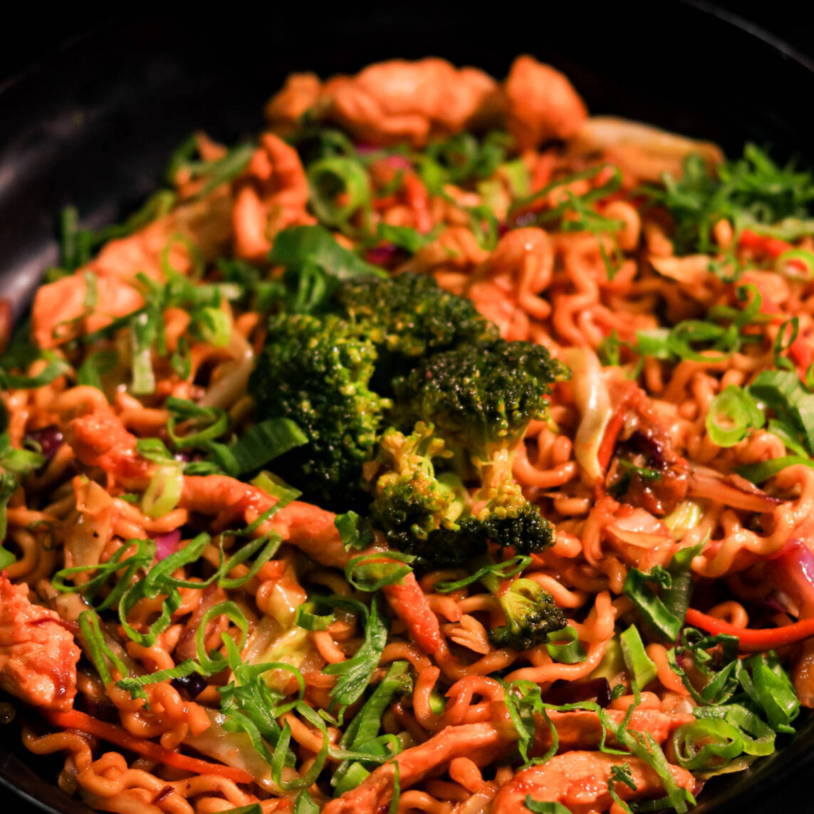 base da pizza frita, arroz, cream cheese, salmão, cebolinha e gergelim.