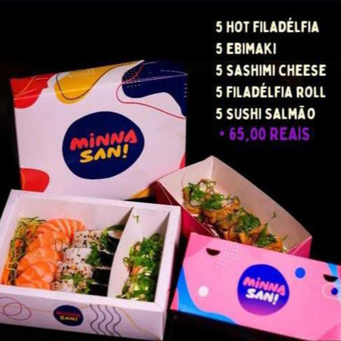 6 sashimi salmão 4 joy joy 1 sushi salmão 1 sushi kani 4 salmão maki 5 uramaki filadelfia 6 hot filadelfia 2 harumaki queijo 3 harumaki chocolate