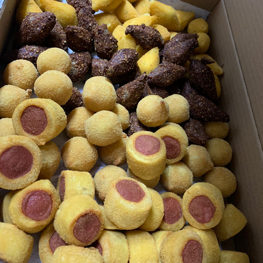 coxinha/ queijo / queijo com presunto / kibe / aipim / calabresa / salsicha